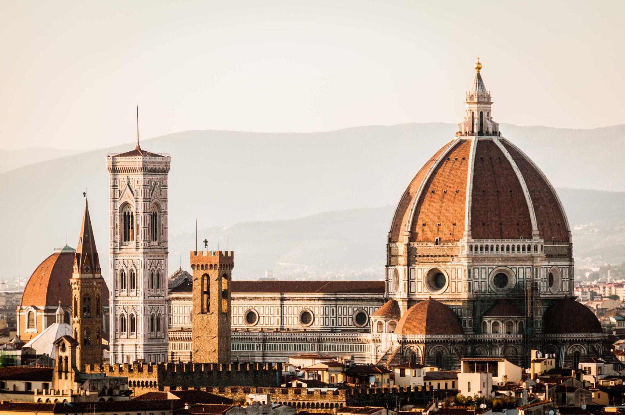 По величине это четвертая церковь в мире, после римского собора Святого Петра, лондонского собора Святого Павла и миланского Дуомо. Храм проектировался с таким расчетом, чтобы в нем могло поместиться все население города (на тот момент – 90 тыс. человек). Строился собор около шести веков под руководством шести архитекторов. В 1296 году Арнольфо ди Камбио сделал проект и приступил к возведению стен. После его смерти в 1331 году попечение над строительством взяла флорентийская гильдия торговцев шерстью и назначила на пост главного архитектора Джотто ди Бондоне. Однако вместо продолжения строительства собора он начал в 1334 году строить Кампанилу – соборную колокольню, мраморные барельефы которой должны были излагать всю историю человечества от сотворения мира.
