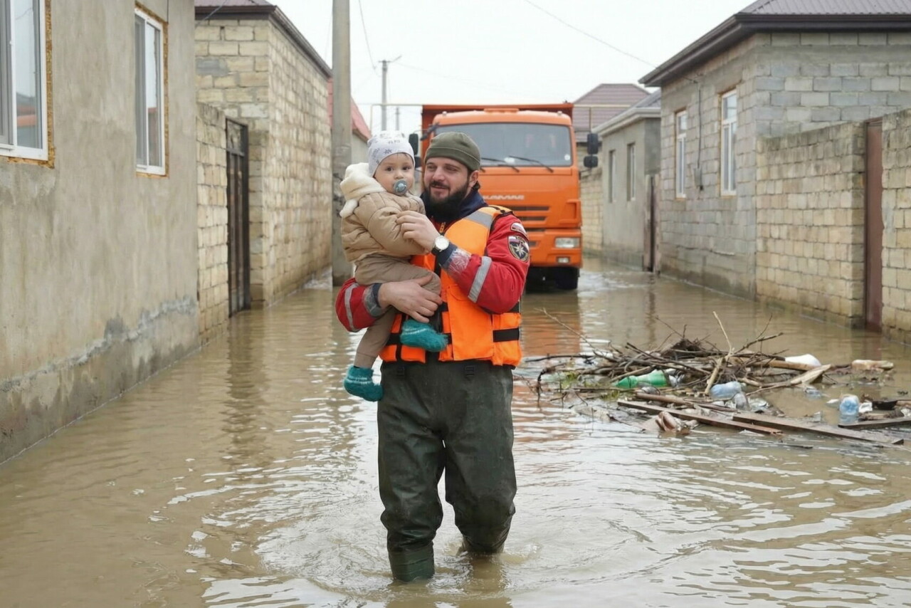Спасатели обходят дома в селе Адильотар, помогая жителям спасти имущество и документы.