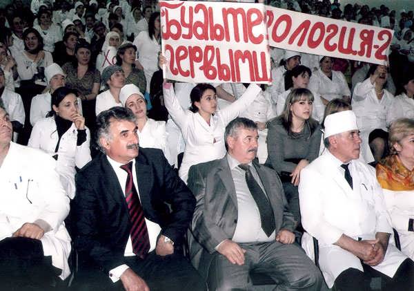 26 мая больница получила новую лицензию на пять лет. РКБ — это город в городе: 40 клинических отделений, 7 реанимационных, 1350 коек, 2,5 тысячи сотрудников. Он живет своей напряженной жизнью, по своему графику. И все нити, связывающие, будто артериями, этот городок с республикой, уверенно держит в своих руках главврач Абакаров. Его рабочий день начинается ранним утром. В половине восьмого он уже владеет всей информацией. К 9-ти — совещание. Четкая работа заместителей обеспечивает четкое принятие решений.