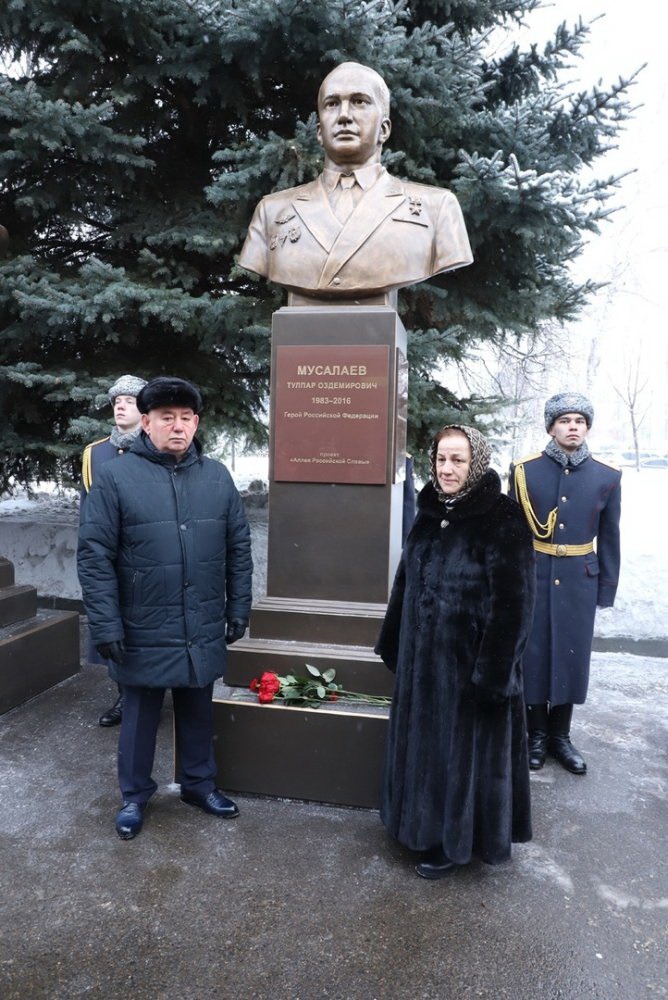 Оздемир и Рукият Мусалаевы на открытии бюста своему сыну Тулпару в Казани
