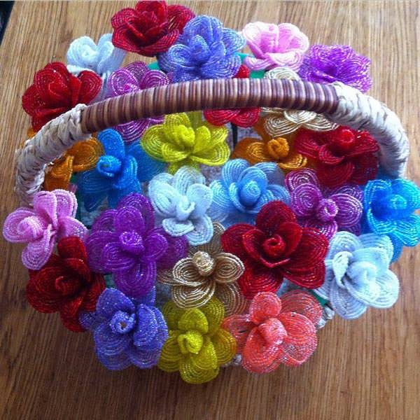 Помимо бисера, Альвина использует и проволоки. Они нужны для создания формы растениям. Идут в ход и горшки для цветов, и корзины, в которых впоследствии и «расцветают» астры, пионы, хризантемы, орхидеи… Работу с бисером можно сравнить с мозаикой. Суть-то одна — бусины, дополняя друг друга, создают цельный предмет или образ. Кстати, родиной бисера считают Древний Египет. Именно там более 4000 лет назад и появились первые украшения, изготовленные из этого материала. А значит, еще тогда рукодельницы радовали своими произведениями окружающих.