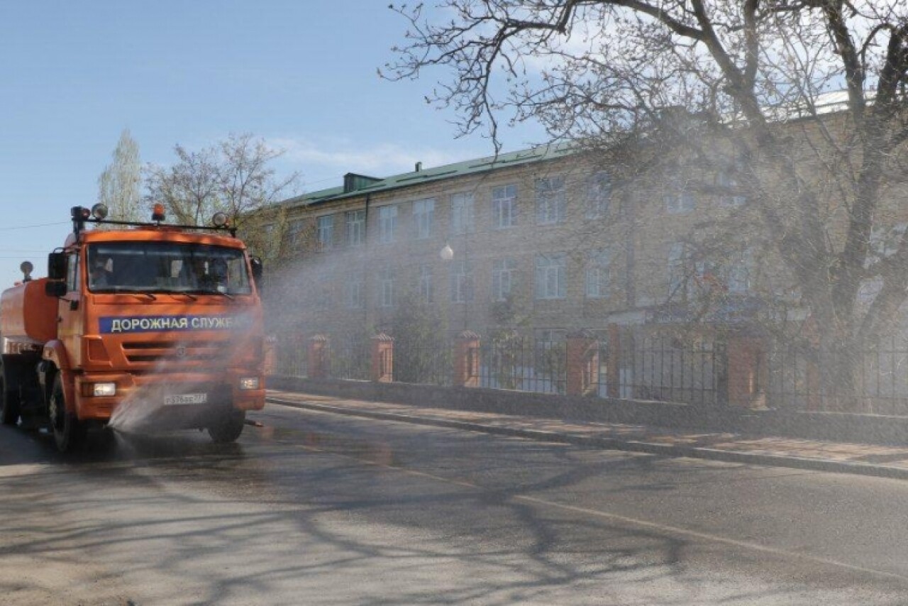 В муниципалитете согласно установленному графику проведена дезинфекция улиц, территории Центральной районной больницы и других социальных объектов, а также общественных территорий (на снимке). Отмечается, что дезинфекция проводится с привлечением специальной техники.