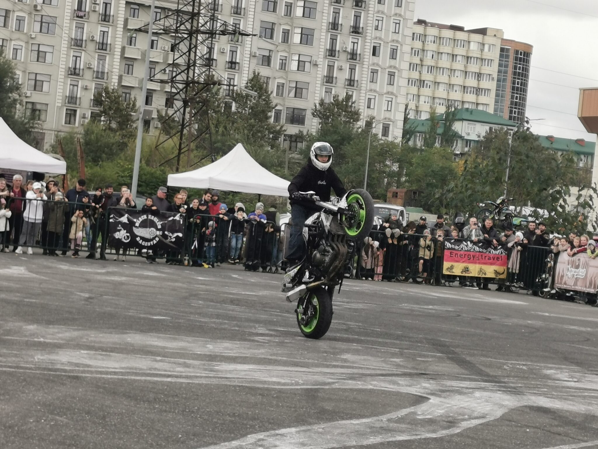 Главным действом, собравшим плотное кольцо зрителей, стал стандрайдинг – трюковая езда на мотоцикле. Виртуозом выступил гость из Сочи Денис Рыбалко, один из лучших стандрайдеров Европы, многократный чемпион России. Его Kawasaki, казалось, бросал вызов законам физики: вставал на заднее колесо, крутился в дрифте и исполнял головокружительные пируэты прямо на асфальте. По словам Рыбалко, эта модель для трюков самая популярная. Купив, ее часто переделывают, убирают лишнее, ставят дополнительное усиление, защиту.