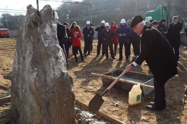 Генеральный директор порта вместе с гостями заложили первый камень на месте строительства: замруководителя Росграницы Магомед Хандаев отправил в строительный раствор олимпийский рубль, назвав монету знаменательной.