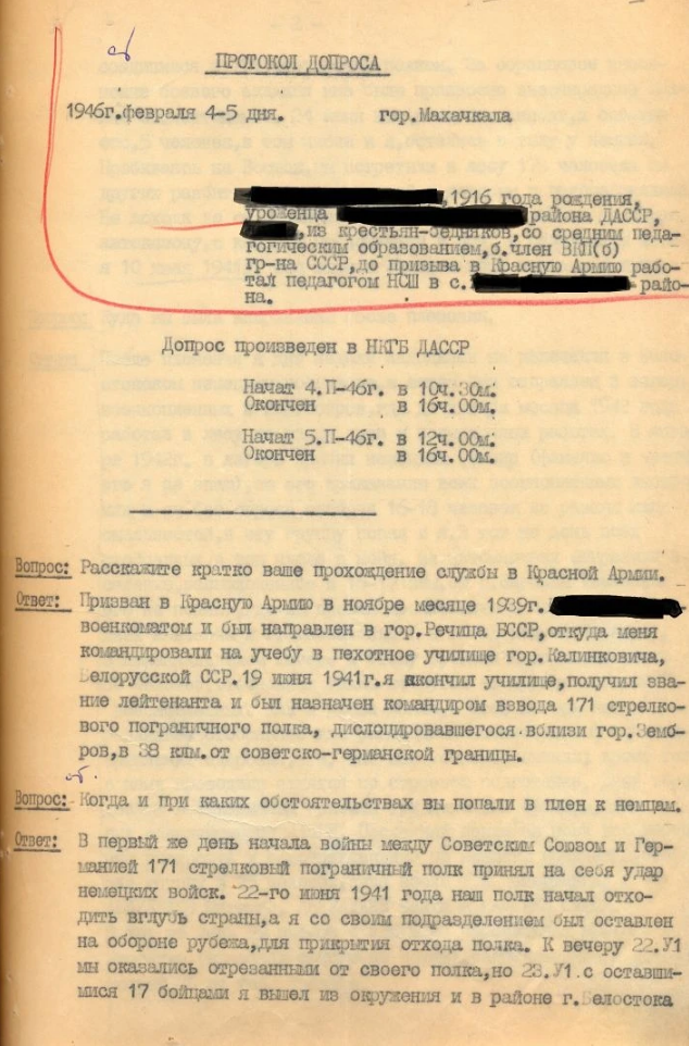 Фото из рассекреченных УФСБ России по Республике Дагестан материалов: выдержки из допросов изменников Родины, прошедших обучение в разведшколах фашистской Германии и в последующем переброшенных в тыл Красной армии на территорию Дагестанской АССР, которые проводила К. А. Агеева.