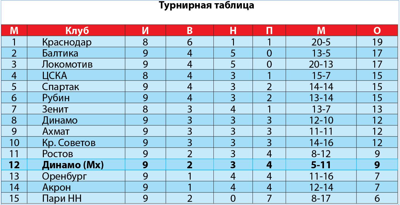 Остальные результаты 9-го тура: «Пари НН» – «Ахмат» – 1:2; «Акрон» – «Рубин» – 2:2; «Оренбург» – «Динамо» – 1:3; «Спартак» – «Крылья Советов» – 2:1; «Балтика» – «Ростов» – 0:0; «Краснодар» – «Зенит» – 0:2.