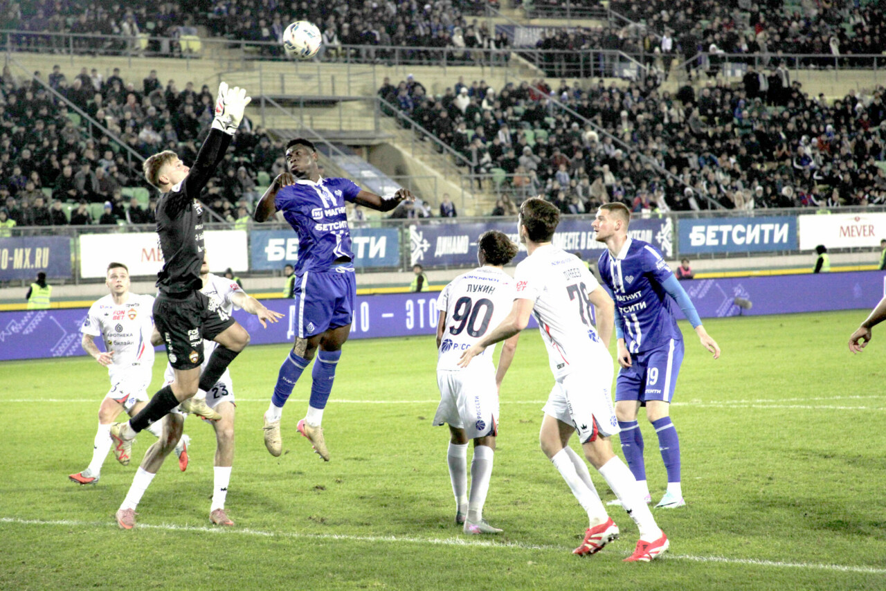 Голкипер «Динамо» Тимур Магомедов: «У нас были шансы, просто не забили, нужно больше работать. Пропущенный гол? Пускай разберут эпизод внимательно и посмотрят видеоповтор. Мы уступили из-за того, что судьи аут неправильно назначили».